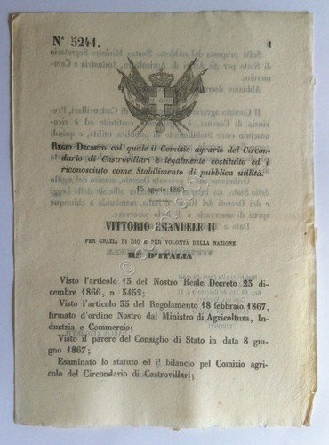 Regio Decreto 5241 Castrovillari stabilimento pubblica utilità