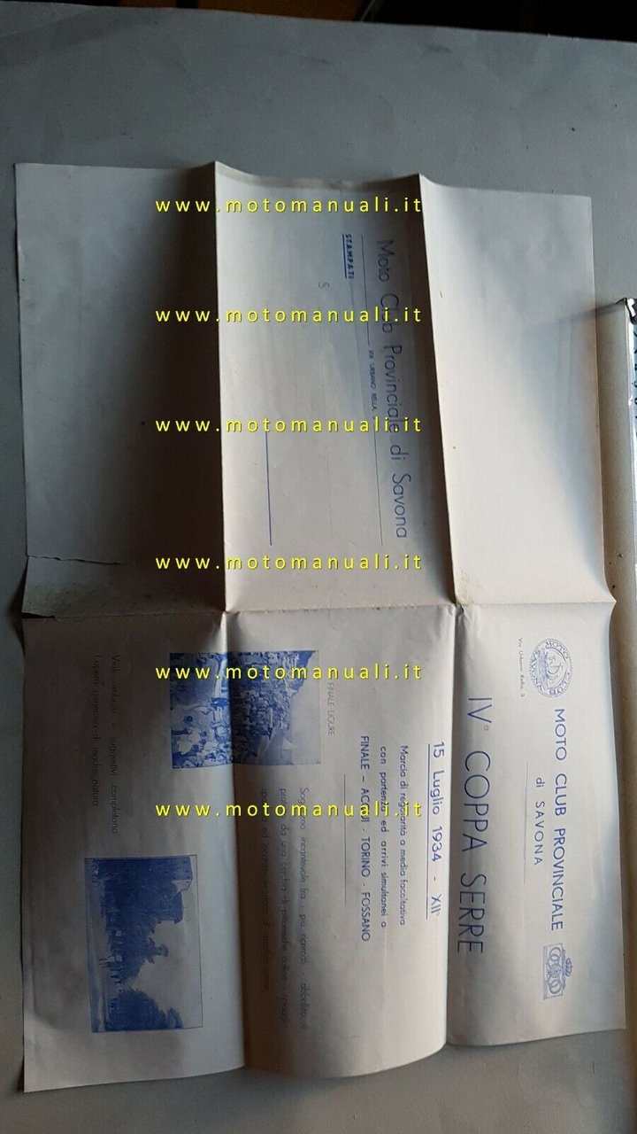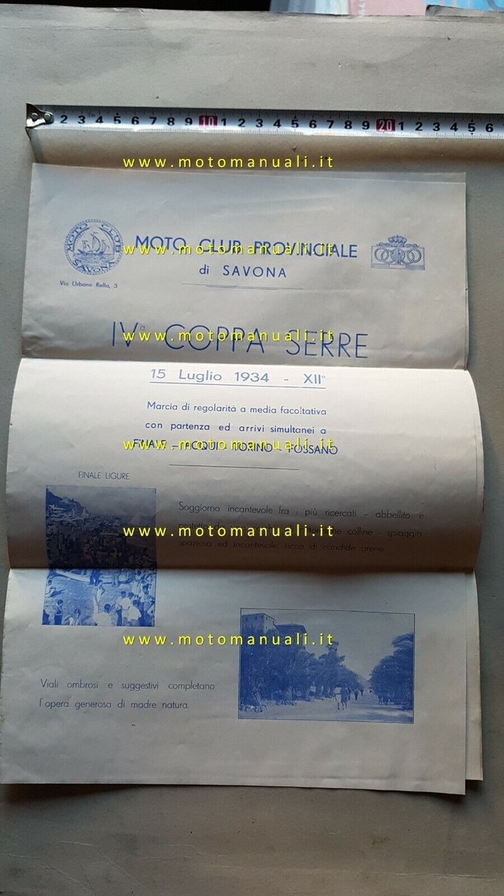 Regolamento Gara Regolarità IV Coppa Serre Savona 1934 depliant anteguerra