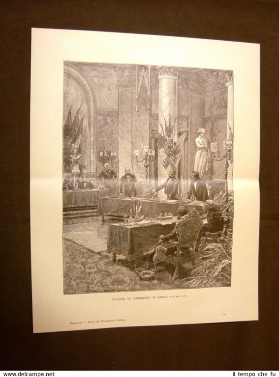 Rara stampa Estratta da pubblicazione dei primi del 1900 Su carta spessa e non retroscritta Risorgimento d'Italia Il Conte Camillo Benso di Cavour al Congresso di Parigi Incisione di Edoardo Matania SDI-027 Dimensioni Cm 26,00 x 33,00 Qualora vogliate delle scansioni migliori contattateci, soddisferemo ogni vostra richiesta. PaypalCarta di creditoBonifico bancario Accuratamente adagiate su un cartoncino e protette da pellicola trasparente rigida,il tutto viene inserito dentro plico di adeguate dimensioni per proteggerne l'integrità.