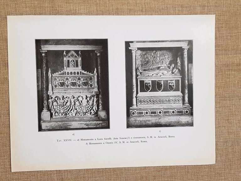 Roma nel 1917 Monumento a Luca Savelli e Monumento a oonorio IV Aracoeli Lazio Rara tavola estratta da pubblicazione del 1917  Stampata su carta non retroscritta  Roma nel 1917 Monumento a Luca Savelli e Monumento a Oonorio IV Aracoeli Lazio Dimensioni: Cm 22,00 x 30,00 Codice prodotto: 1911-075