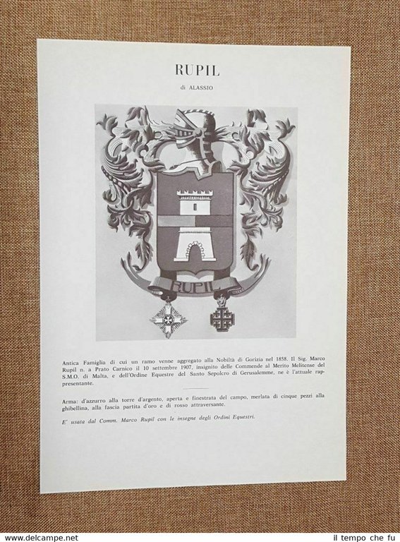 Rupil di Alassio Stemma Famiglia Nobile Nobiltà Araldica