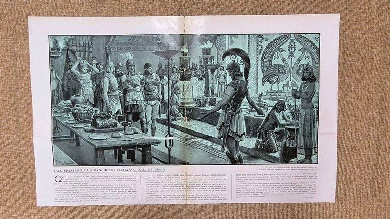 Sale spartano a un banchetto persiano Quadro di F. Matania Grande stampa 1933