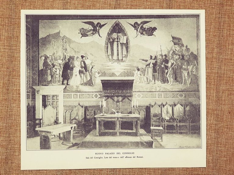 San Marino nel 1911 Nuovo Palazzo del Consiglio Sala, trono affresco del Retrosi