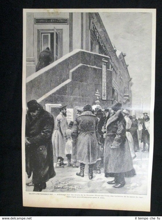 San Pietroburgo - Duma, bollettini sullo zar Alessandro III Incisione del 1894