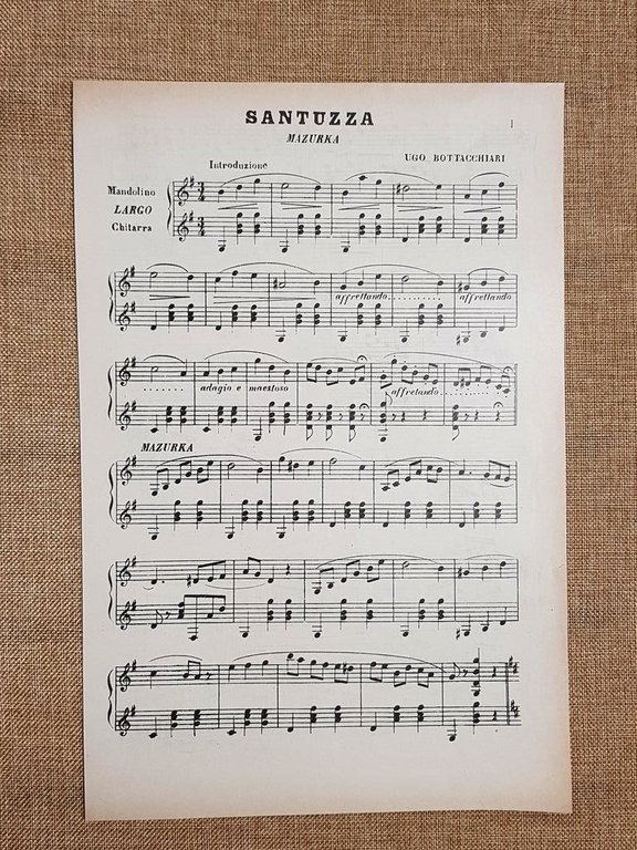 Spartito musicale del 1896 Santuzza Mazurka Musica di Ugo Bottacchiari
