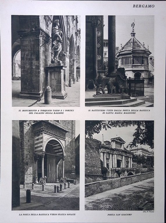 Stampa del 1928 Bergamo San Giacomo Battistero Cappella Colleoni Monumento Tasso