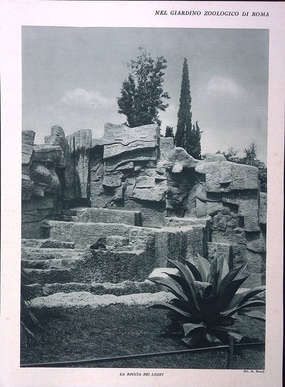 Stampa del 1928 Giardino Zoologico di Roma Leoni Orango Scimmie