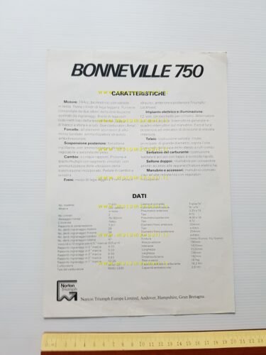 Triumph Bonneville 750 T 140 V 1973 depliant originale italiano