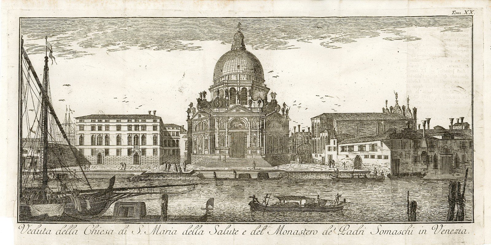 Veduta della Chiesa di S. Maria della Salute e del Monastero de' Padri Somaschi in Venezia.