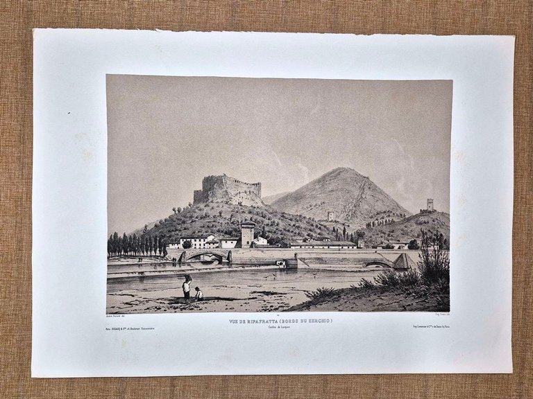 Veduta di Ripafratta Serchio Tra Lucca e Pisa Durand Ciceri XIX secolo Ristampa