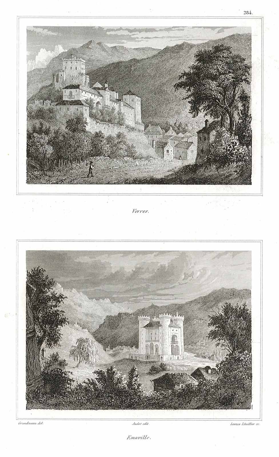 Due piccole vedute in unico folio dei castelli di Verres ed Emaville