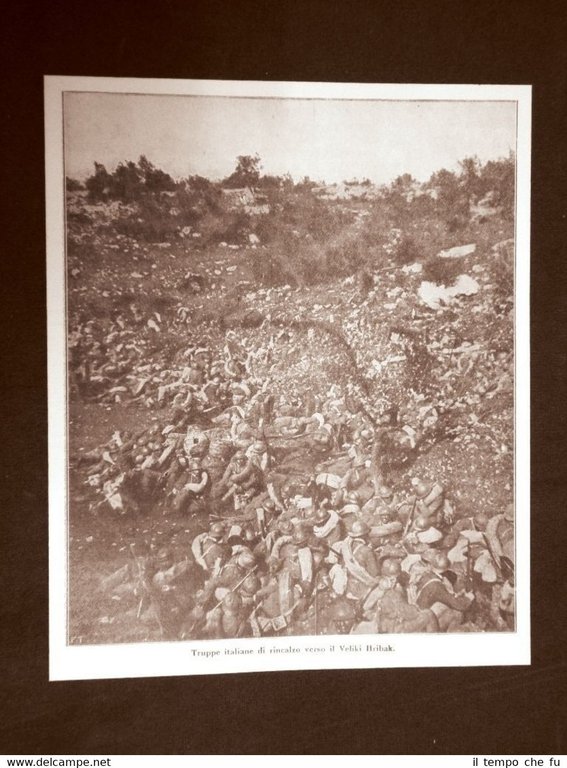 Rara stampa Estratta da Rivista d'epoca del 1918 . .stampa che ha quindi oltre 98 anni! WW1 o Prima guerra mondiale del 1914 - 1918 Truppe italiane di rincalzo verso il Veliki Hribak nel 1916 II1918-087 Dimensioni Cm 15,00 x 18,00 Qualora vogliate delle scansioni migliori contattateci, soddisferemo ogni vostra richiesta. PaypalCarta di creditoBonifico bancario Accuratamente adagiate su un cartoncino e protette da pellicola trasparente rigida,il tutto viene inserito dentro plico di adeguate dimensioni per proteggerne l'integrità.